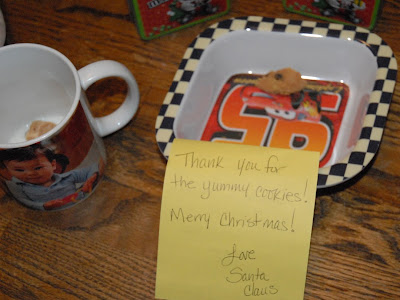 Christmas, 2012. In the weeks leading up to Christmas, packages kept arriving at the front door. Of course, Casey wanted to open each and every one the moment they arrived. But we kept telling him to wait until Christmas. The days passed, and the pile of presents under the Christmas tree grew. Finally, it was Christmas Eve. Before going to bed, Casey helped leave Santa Claus some cookies. He personally choose three frosted Animal Cookies, and three chocolate chip cookies. We poured a small mug of milk and wrote a note to Santa. "Help yourself to some milk and cookies- Merry Christmas" Fast forward to Christmas morning. Casey came down to the dining table, looked at the cookie bowl, and said, "He left a piece of cookie!". Then he looked inside the mug and said, "He dropped a piece of cookie in his milk. Let's save it for him".